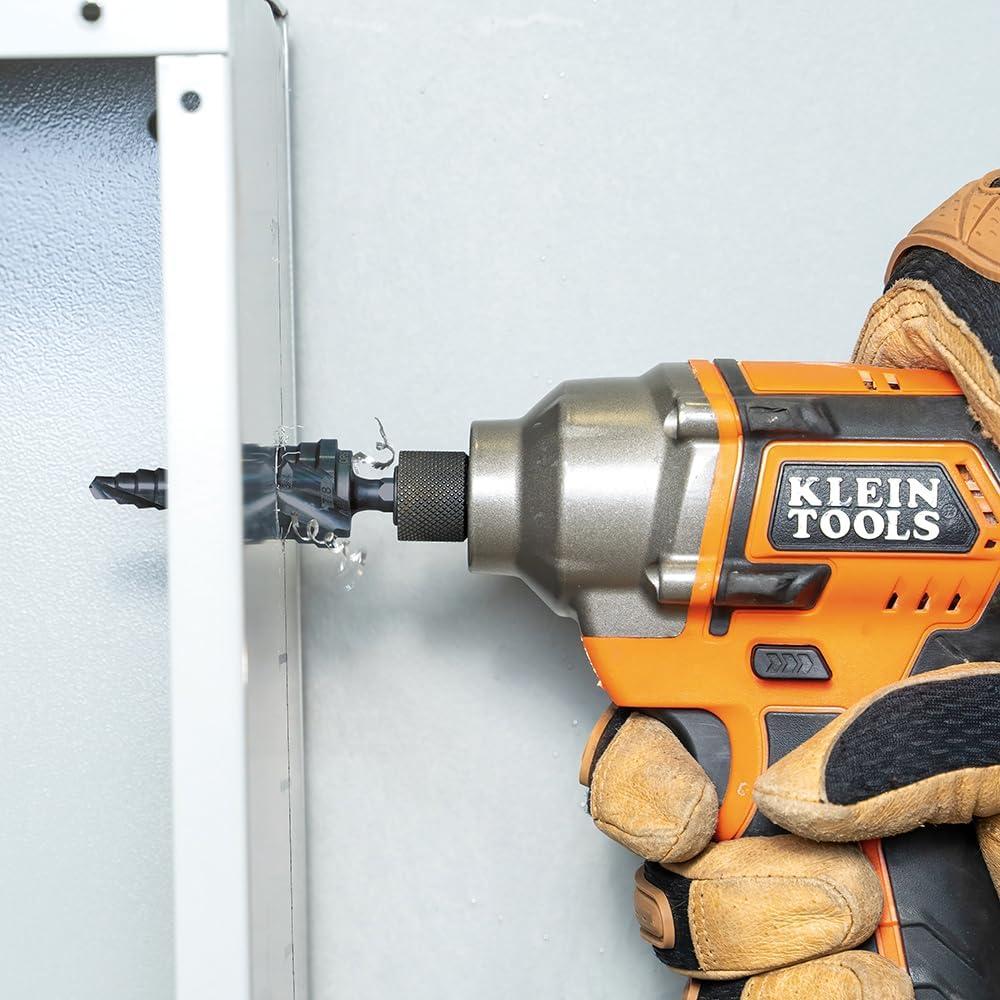 imageKlein Tools QRSTSPRO Premium 3Piece Electricians Step Bit Set with Cutting Oil Modular Case Impact Rated Quick Release Double Spiral FlutesQuick Release
