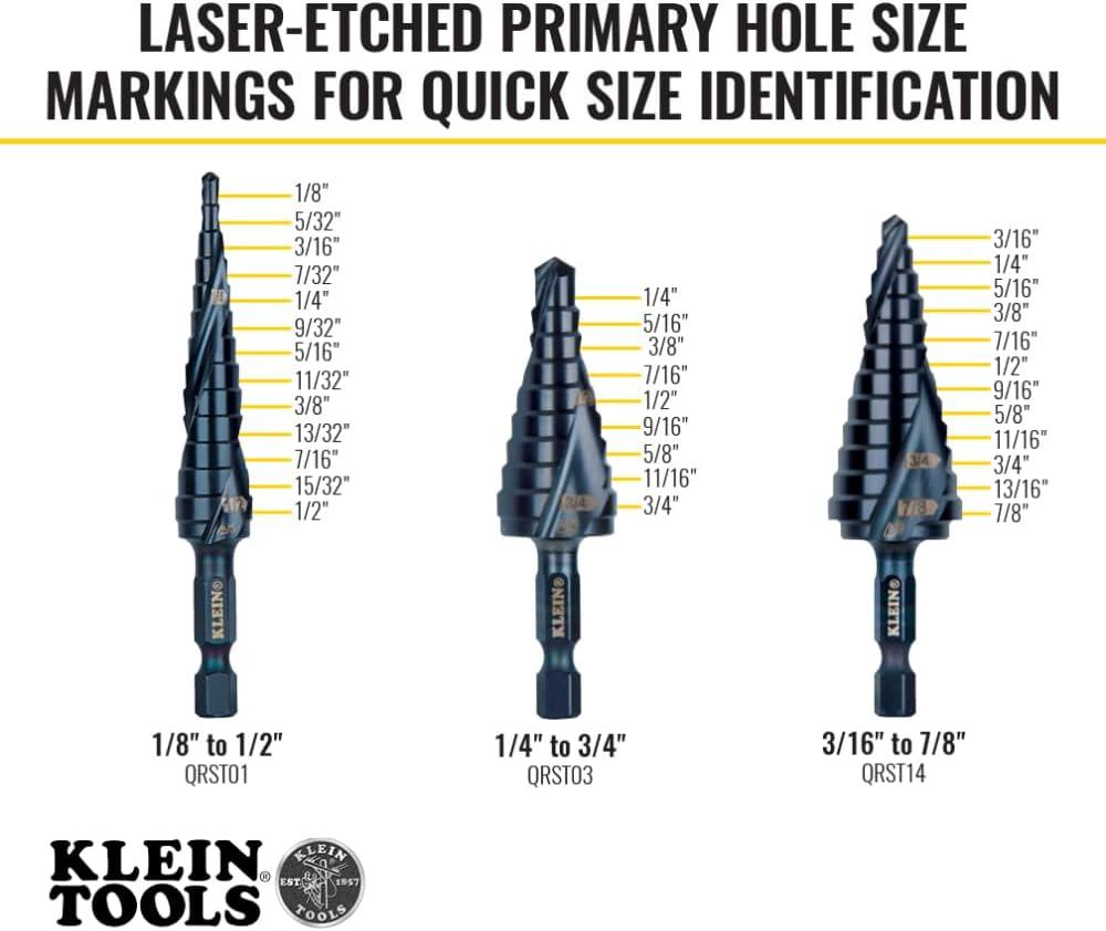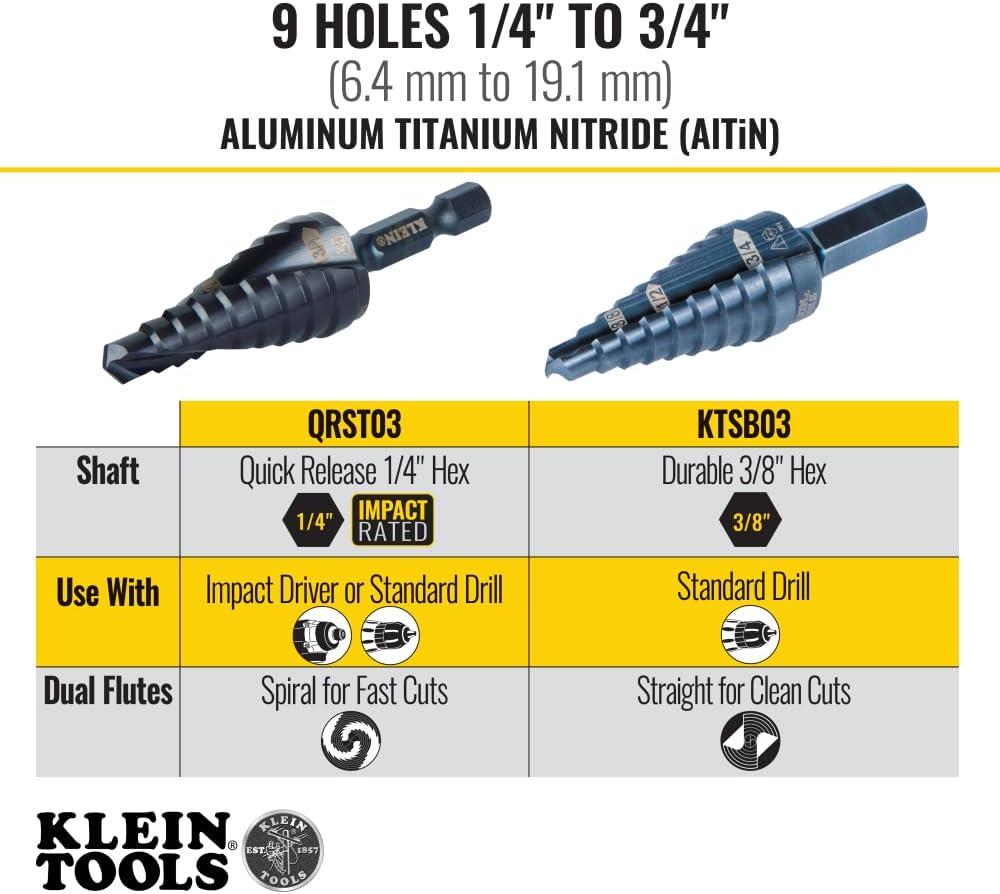 Our holiday sale features the best deals on Klein Tools QRSTSPRO Premium 3-Piece Electrician’s Step Bit Set with Cutting Oil, Modular Case, Impact Rated Quick Release, Double Spiral Flutes(Quick Release) and accessories. Shop now and save!