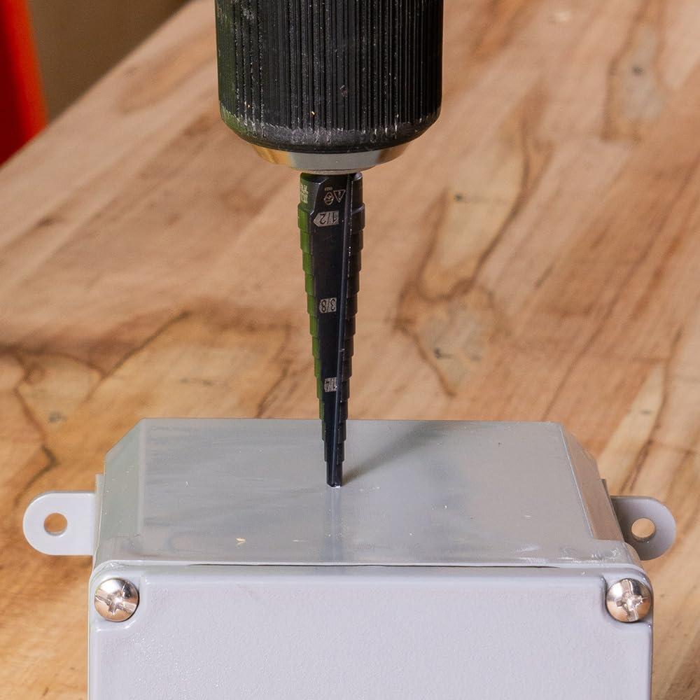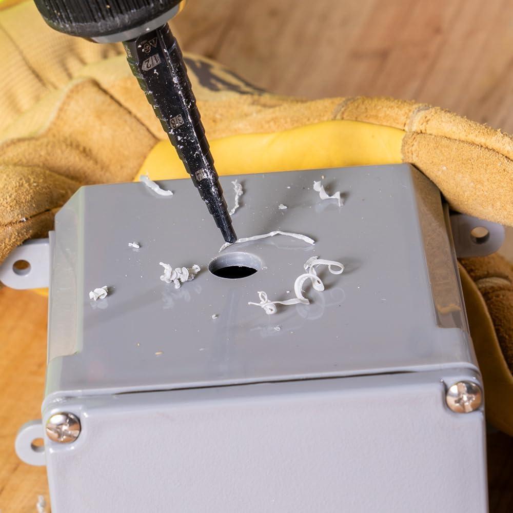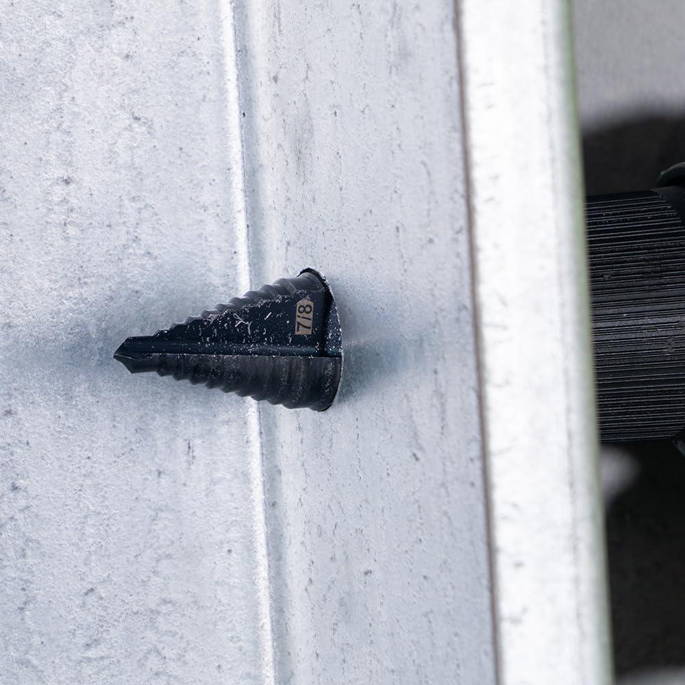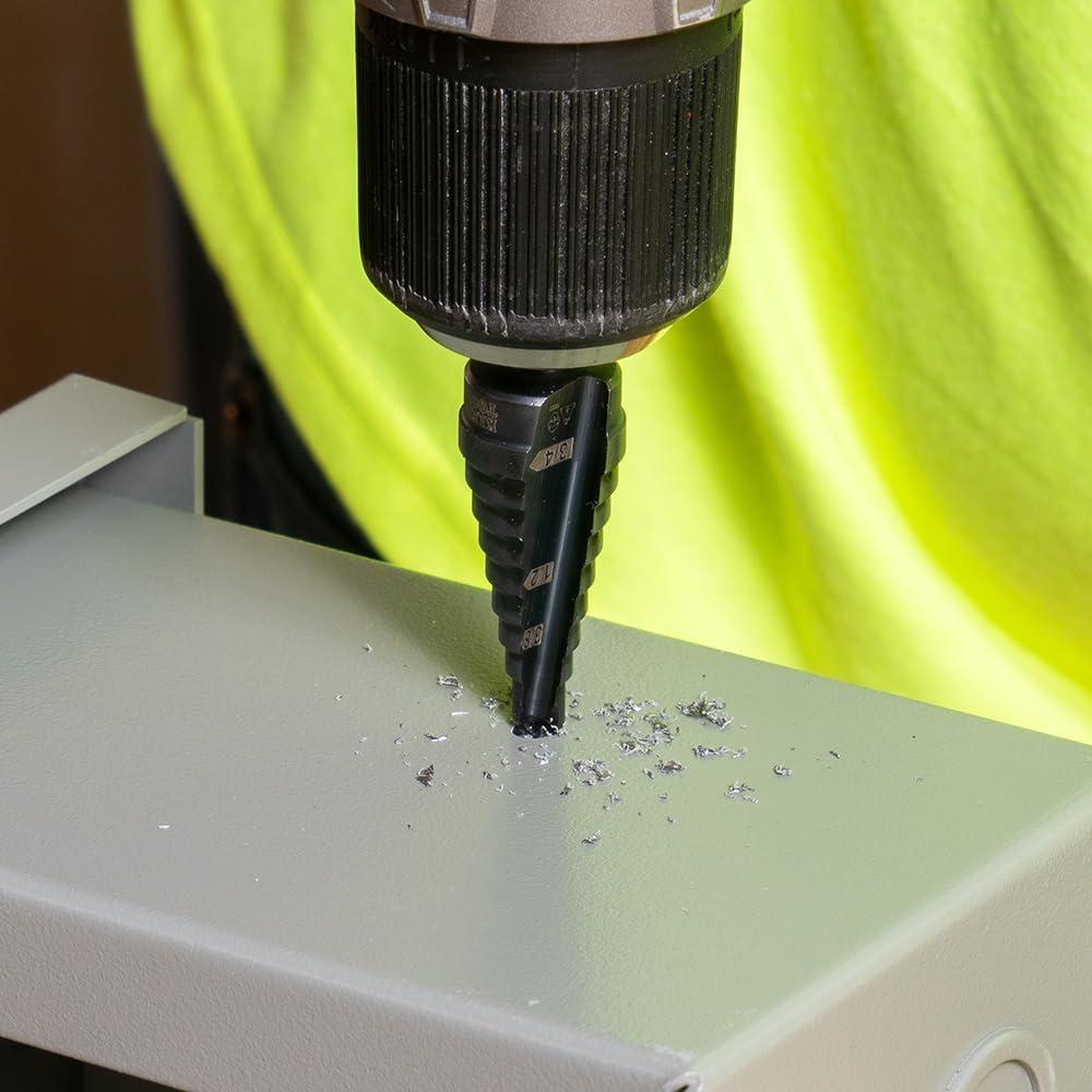 SET CONTAINS 3 STEP BITS: 7/8-Inch, 1-1/8-Inch, and 1-3/8-Inch sizes for creating hole cutouts in panels and j-boxes to accommodate most commonly used 1/2-Inch, 3/4-Inch, and 1-Inch conduit