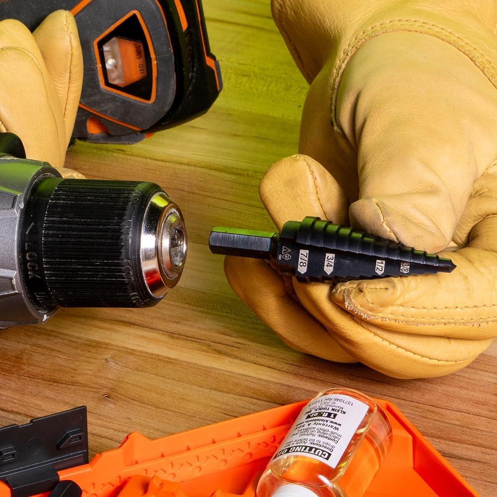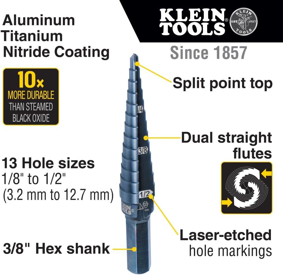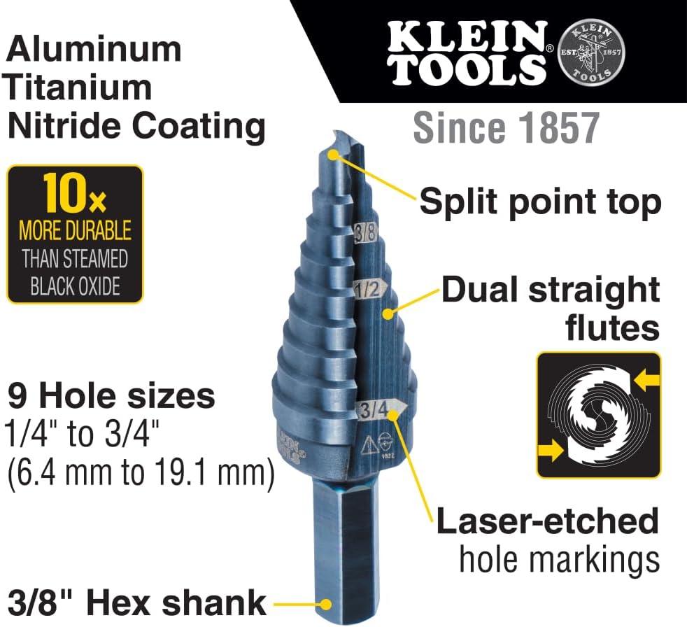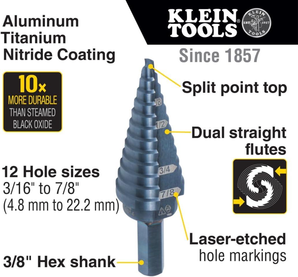 DURABLE ALUMINUM TITANIUM NITRIDE COATING: Step bits coated with aluminum titanium nitride, 10 times more durable than black oxide, for longer bit life
