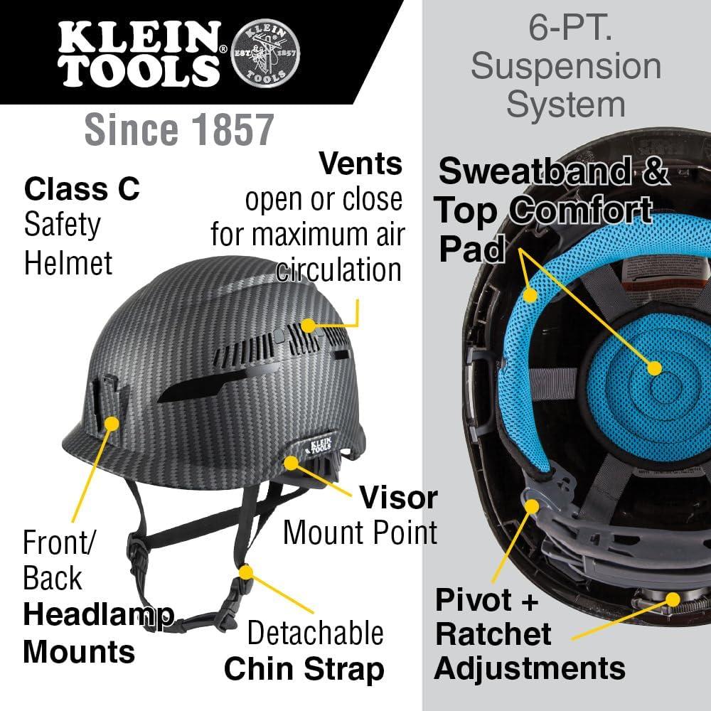 Klein Tools Safety Helmet, Vented Class C Safety Hard Hat, Removable Chin Strap, Adjustable Vents(KARBN Hardhat)