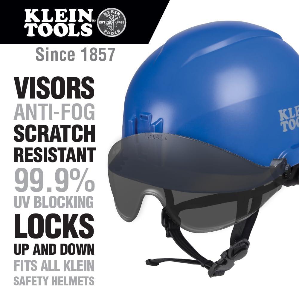 2-Piece Klein Tools Safety Helmet Kit is engineered for optimal safety, comfort and fit. Compact, lightweight helmet design, with chin strap, allows to comfortably work in confined spaces and at-height applications. The Durable Anti-fog, scratch resistance with UV coatings clear visor provides added convenience and protection. For more than 160 years, Klein Tools has manufactured premium-quality, professional-grade hand tools that deliver the performance, durability and precision needed to get the job done right. Our family of engineers, workers and craftsman continue to put six generations of expertise into every tool we create by using only the highest quality materials, superior workmanship, and keeping manufacturing as close to home as we can. Klein isn't just the name of our company, it's also our family name. And since we're an American company that's family-owned and family-run, you know you can count on us to be here tomorrow. Klein Tools doesn't just make great products, we make great products that stand up to the demands of the professionals who use them every day … Since 1857.