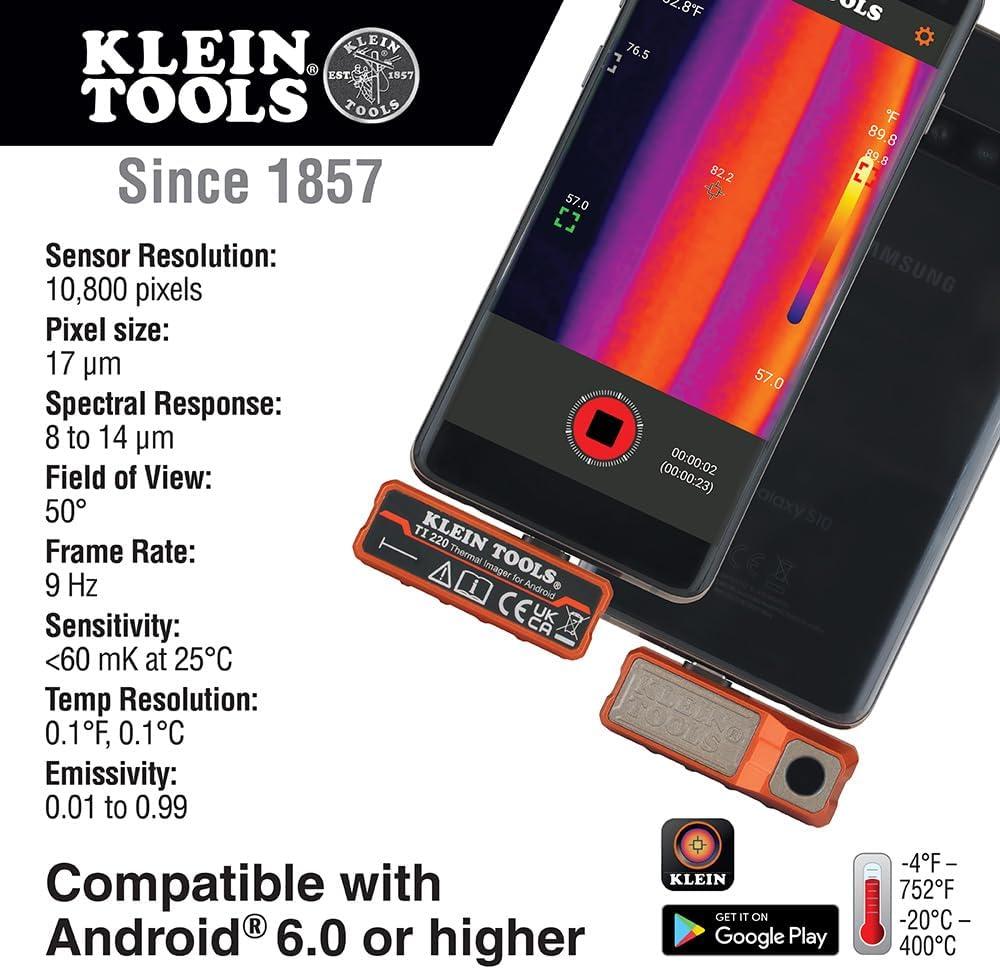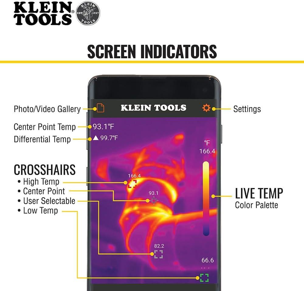 Klein Tools TI222 Thermal Imager for iPhone and all iOS Devices, Thermal Imaging Camera, 10,800 Pixels, Three Color Palettes, High/Low Temperatures(Android)
