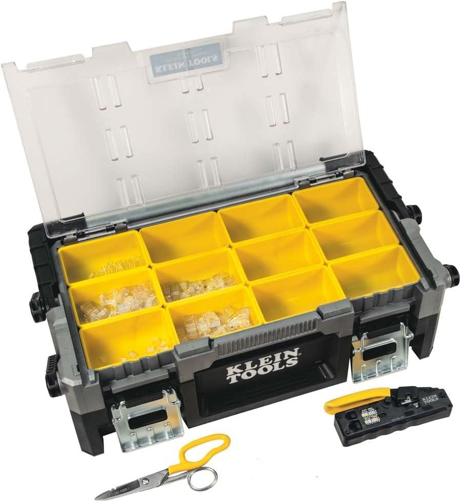 Klein Tools VDV001-833 VDV ProTech Kit with Transport Case, Cable Stripper, Crimper, Compression Connecters, Cable Cutter, Data/Telephone Plugs(Tool box Prepare and Connect RJ45 Twisted Pair)