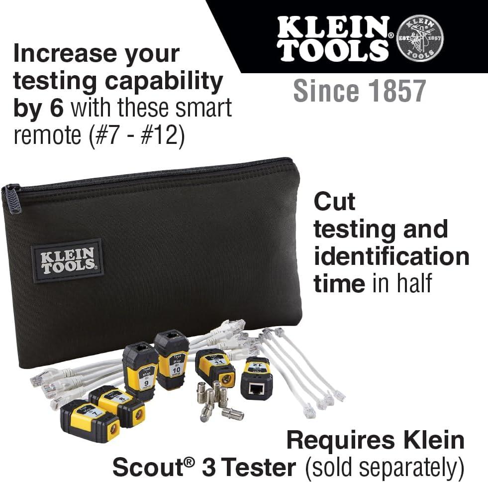 Single-step Test + Map Remotes (#7 thru #12) cut cable testing and identification time in half! This Test + Map Expansion Kit increases testing capacity with these six additional smart remotes. The remotes ensure fast and accurate cable installations each time. Each is clearly marked for easy identification. This remote kit works with Klein's line of Scout Pro series of testers (sold separately). For more than 160 years, Klein Tools has manufactured premium-quality, professional-grade hand tools that deliver the performance, durability and precision needed to get the job done right. Our family of engineers, workers and craftsman continue to put six generations of expertise into every tool we create by using only the highest quality materials, superior workmanship, and keeping manufacturing as close to home as we can. Klein isn't just the name of our company, it's also our family name. And since we're an American company that's family-owned and family-run, you know you can count on us to be here tomorrow. Klein Tools doesn't just make great products, we make great products that stand up to the demands of the professionals who use them every day … Since 1857.