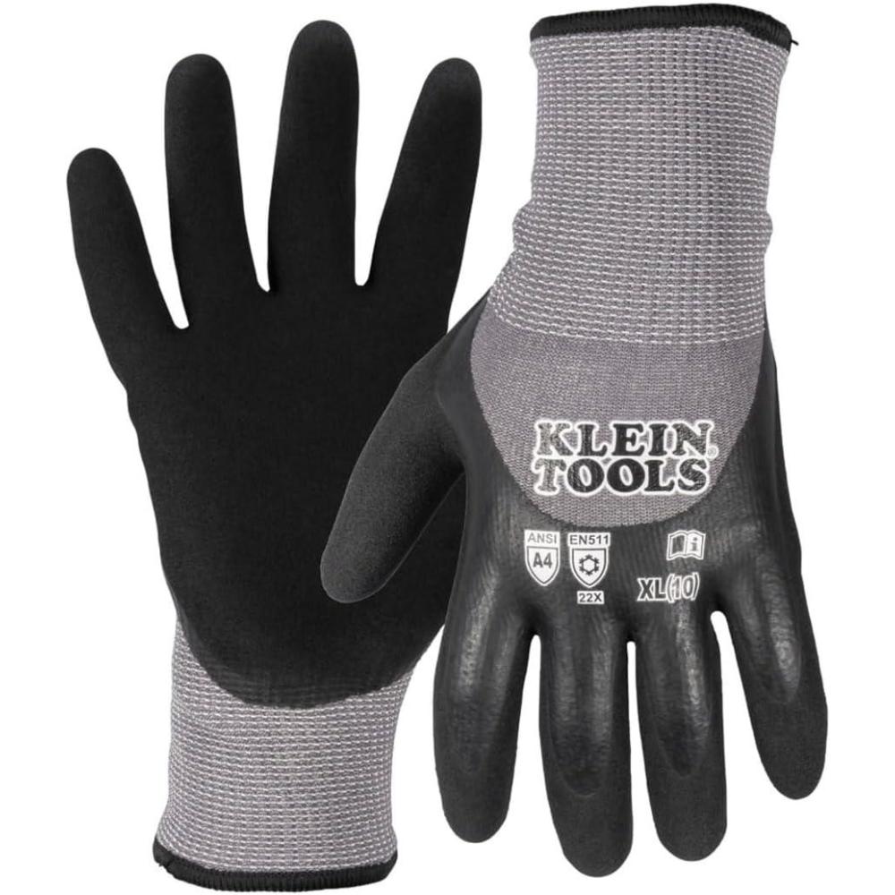 Klein Tools Winter Work Gloves, Knit Dipped ANSI A4 Cut-Resistant, Sandy Latex Coated, Fleece-Lined, Touchscreen Capable(X-large)
