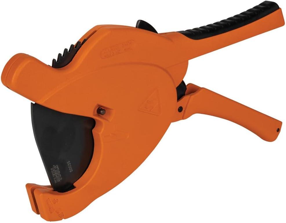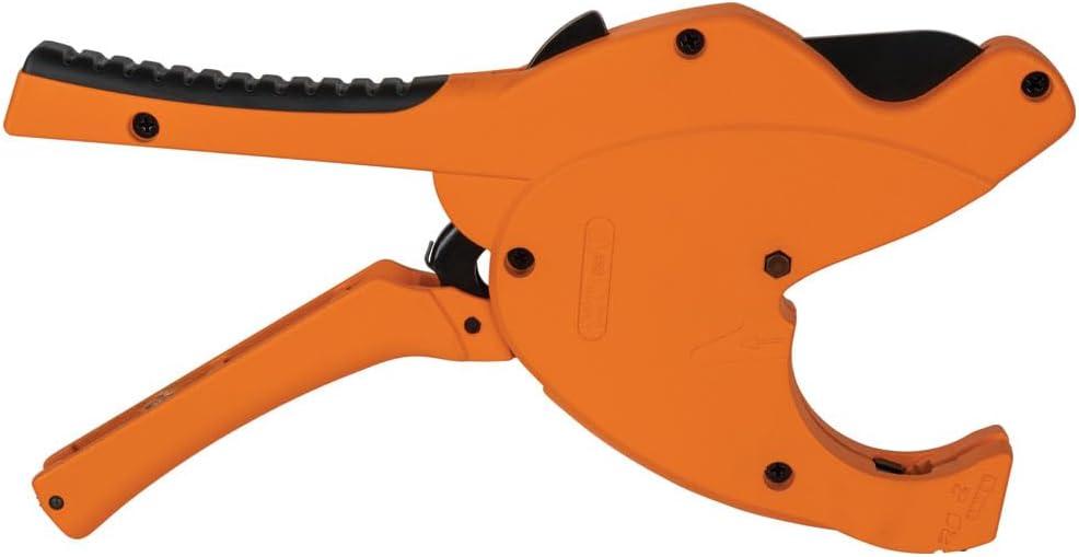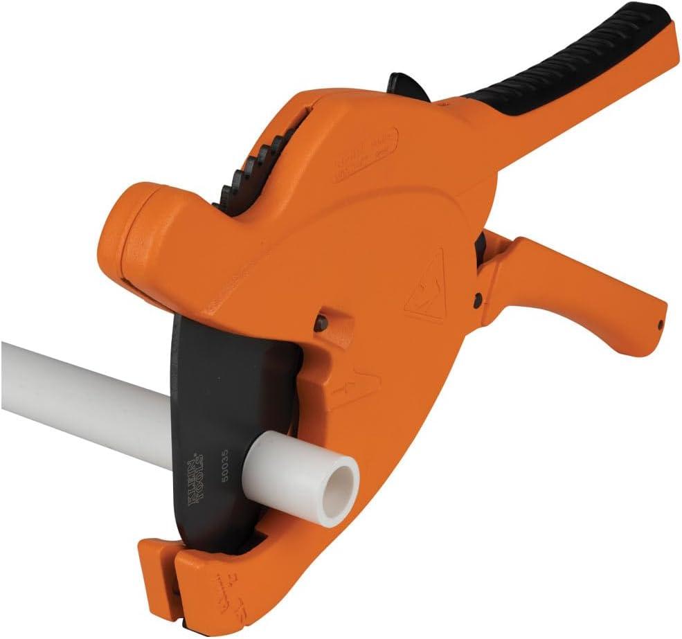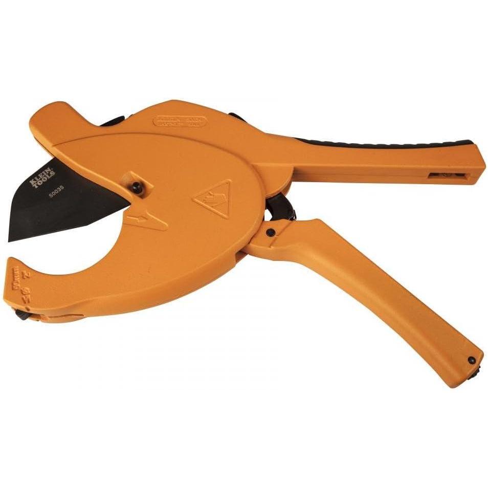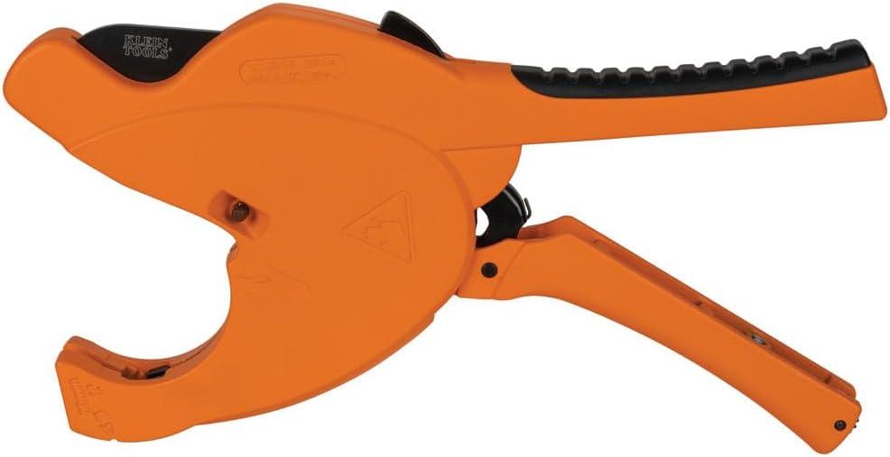 The Klein Tools ratcheting PCV cutter cuts white and gray 1/2-Inch to 2-1/2-Inch white and gray schedule 40 and 80 PVC. The ratcheting action allows for easy, one-handed cutting and blade release. Lightweight, comfortable handle reduces hand fatigue. For more than 160 years, Klein Tools has manufactured premium-quality, professional-grade hand tools that deliver the performance, durability and precision needed to get the job done right. Our family of engineers, workers and craftsman continue to put six generations of expertise into every tool we create by using only the highest quality materials, superior workmanship, and keeping manufacturing as close to home as we can. Klein isn't just the name of our company, it's also our family name. And since we're an American company that's family-owned and family-run, you know you can count on us to be here tomorrow. Klein Tools doesn't just make great products, we make great products that stand up to the demands of the professionals who use them every day … Since 1857.